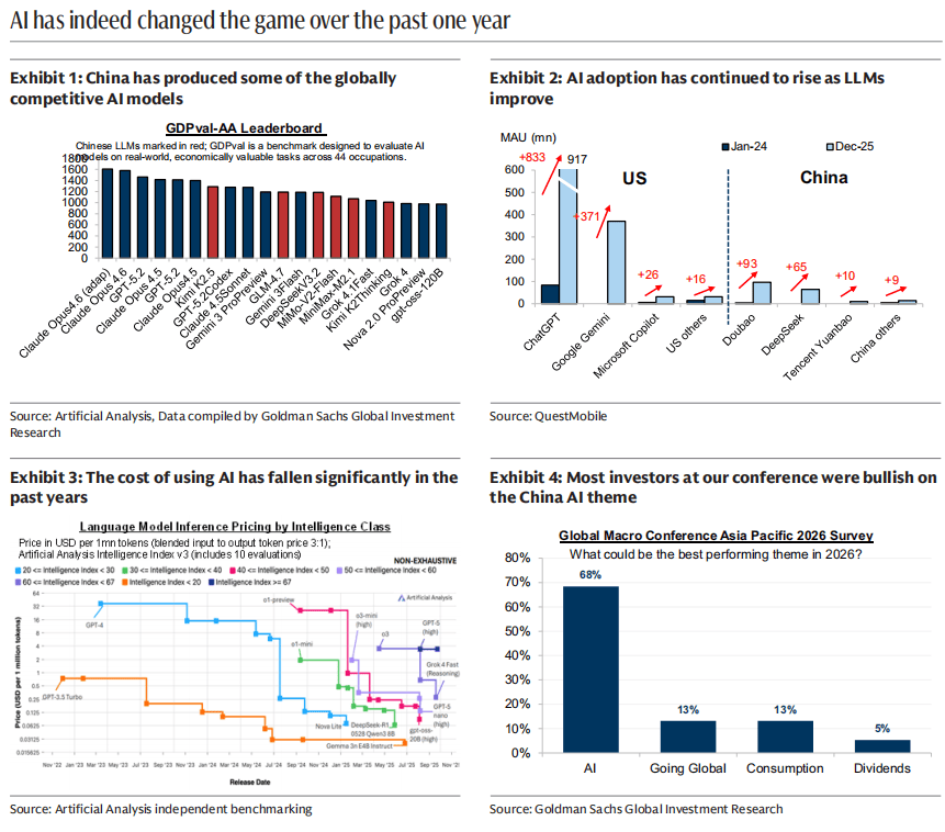 分歧的各个环节,由新手艺带来的贸易模式立异正新的增加空间,系统地勾勒出中国AI范畴的行业全景图,比来高盛发布了4份关于AI的演讲,开篇从“DeepSeek时辰”切入,尔后者则汇集了平台型模子公司取面向消费者的AI使用企业;第四份则为行业察看者供给了理解AI海潮中分歧成长径的多元视角。